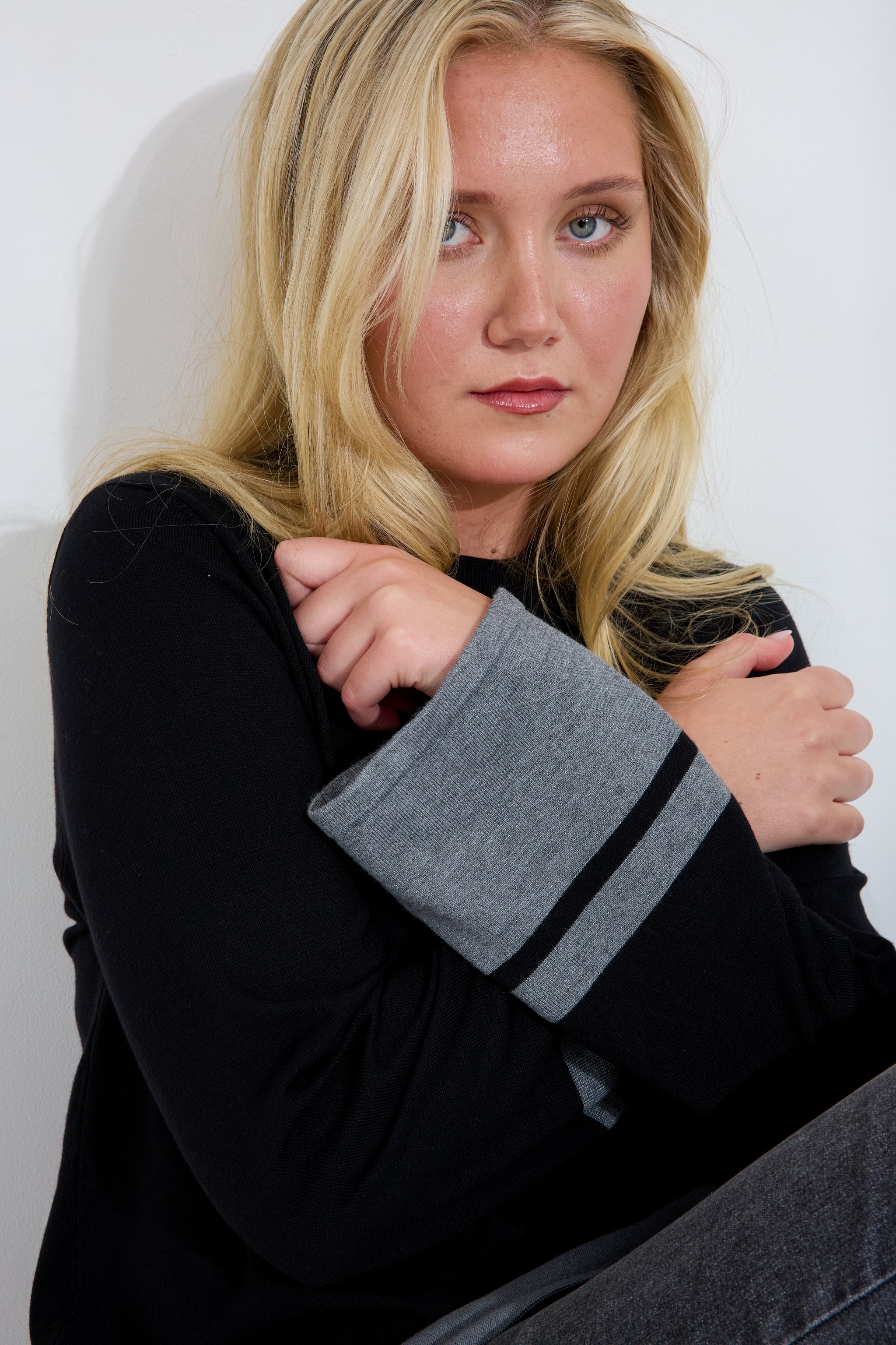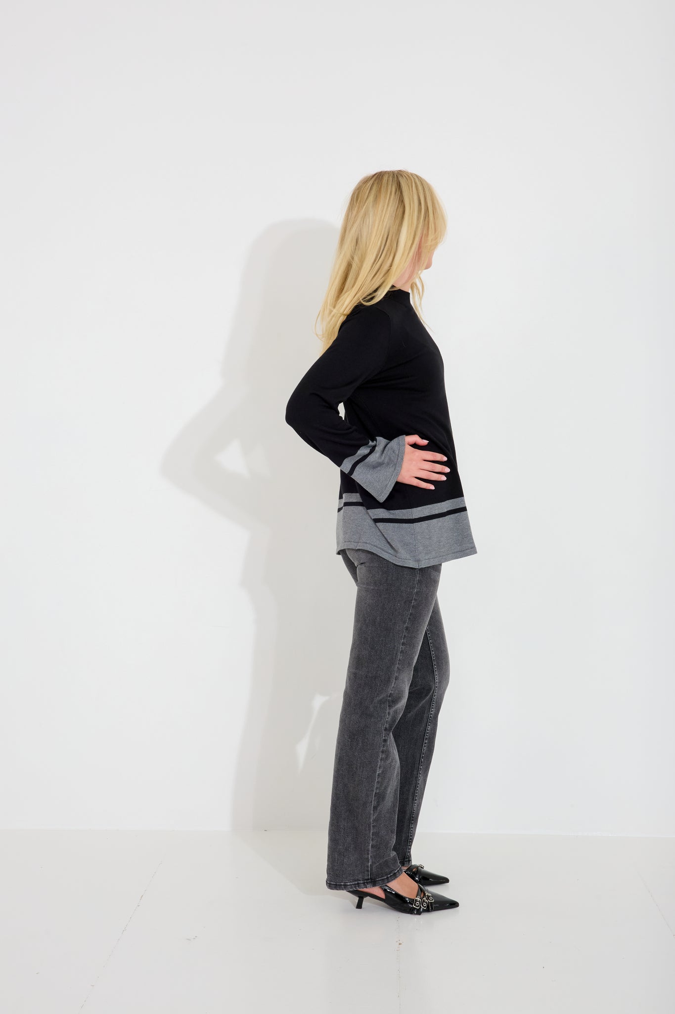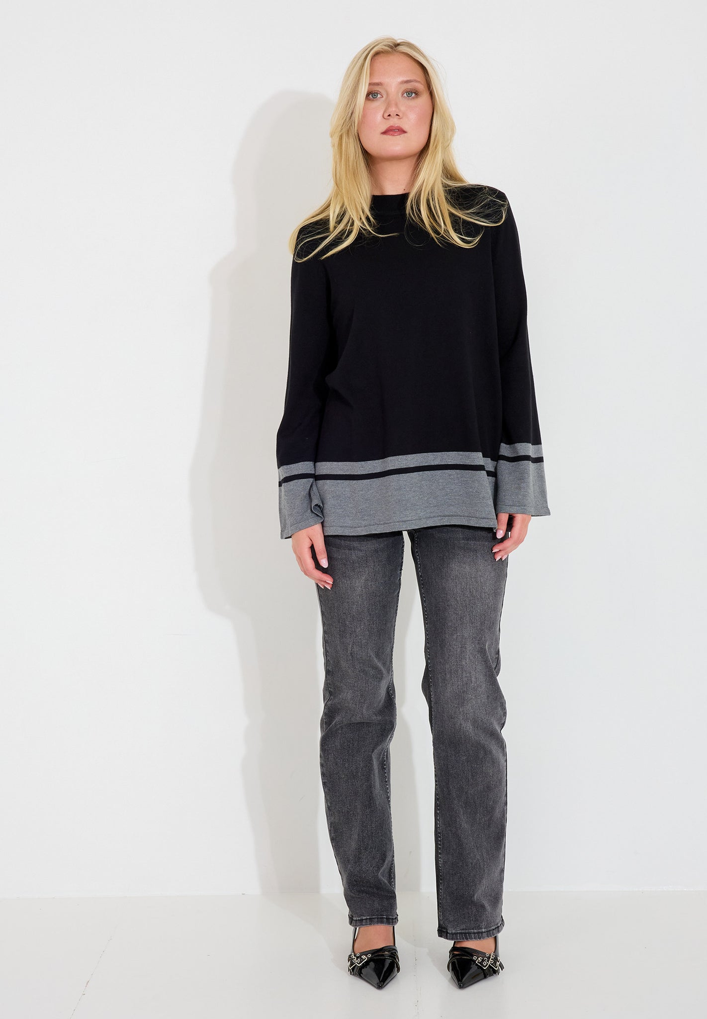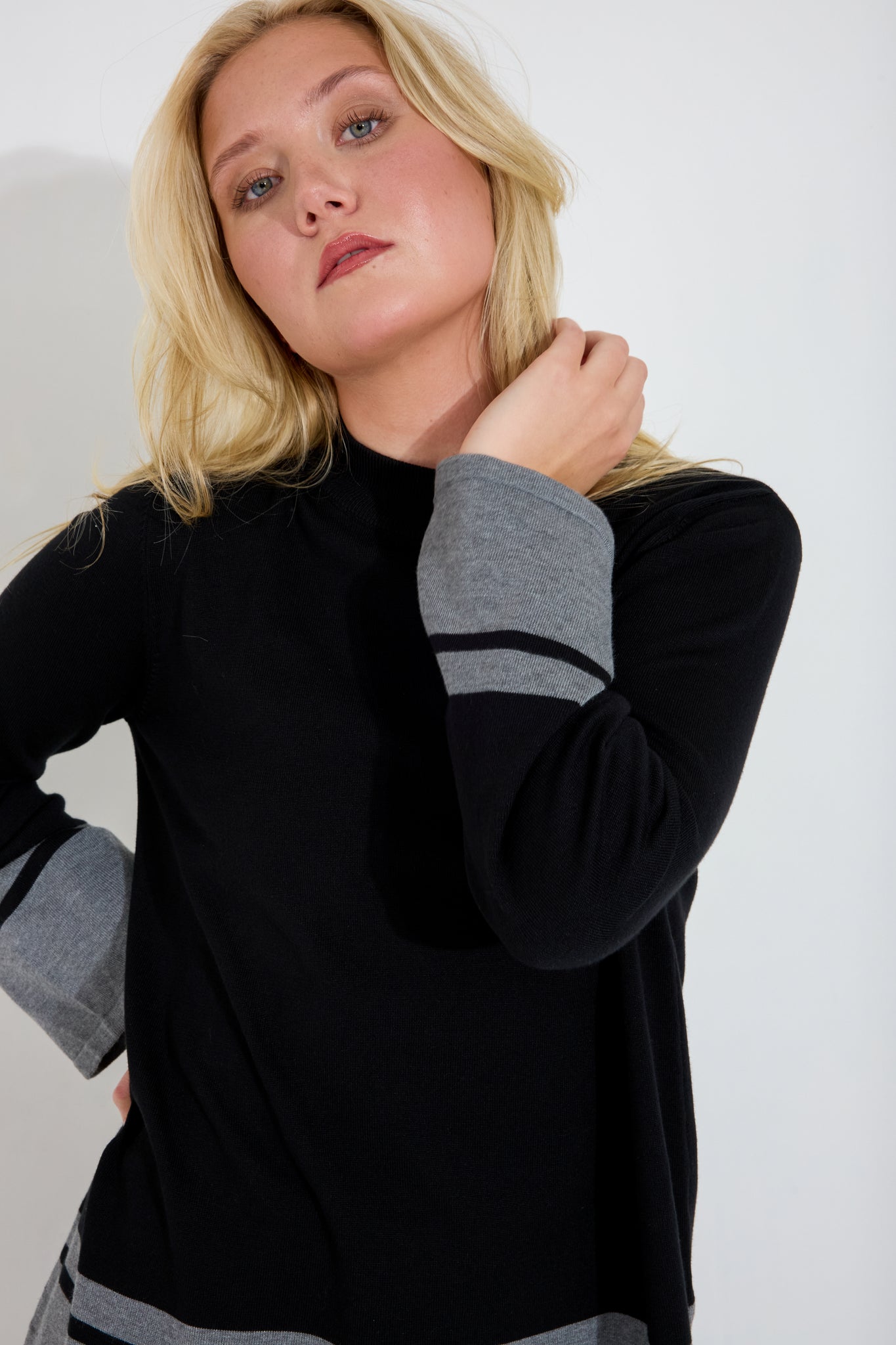Mjuk & skön stickad tröja, lite a-formad silhuette med vidd i ärmslut.