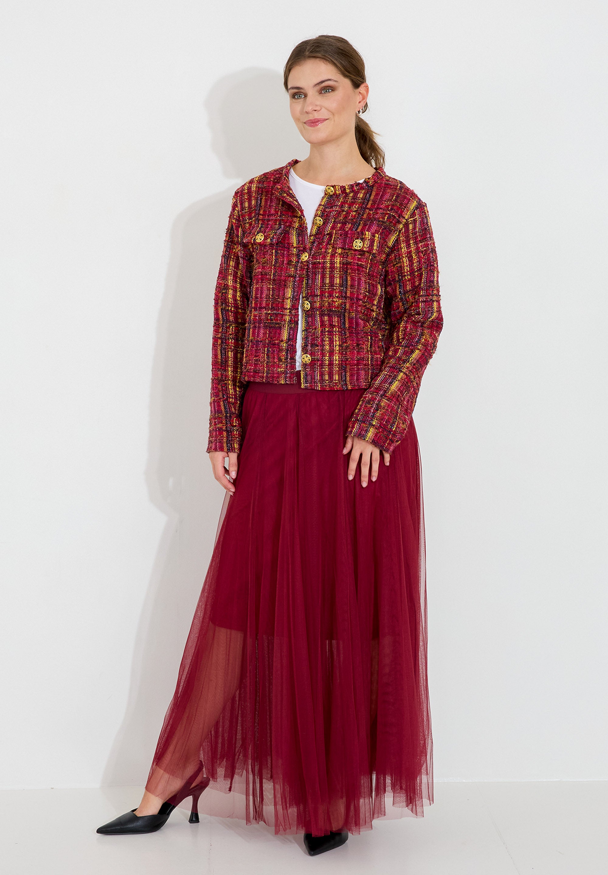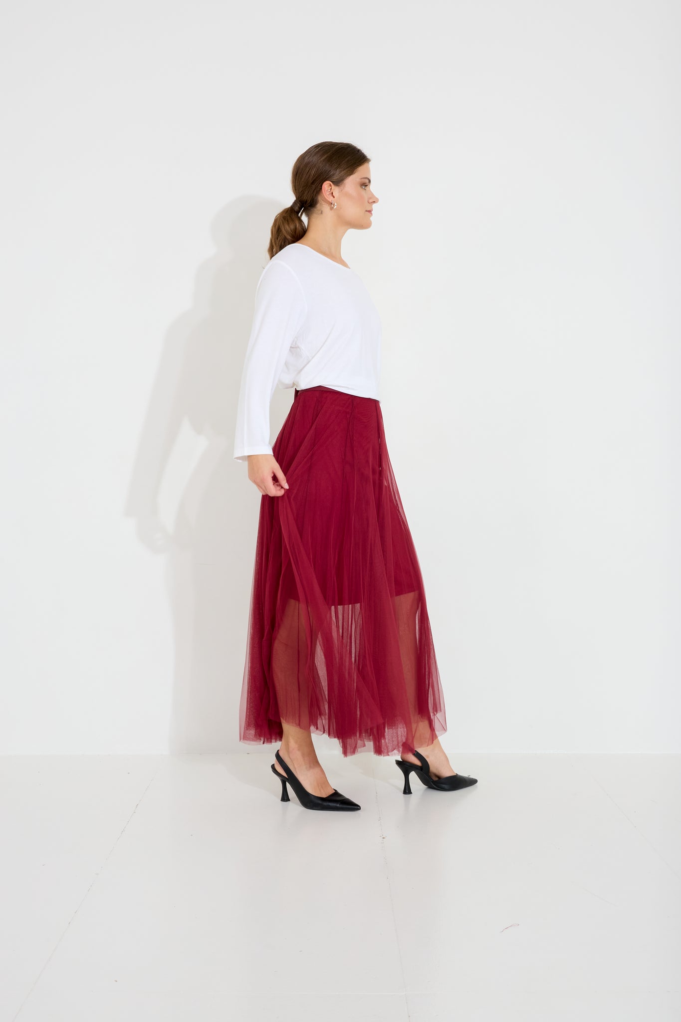 Meshkjol med kortare underkjol, perfekt till fest och vardagssnygg.